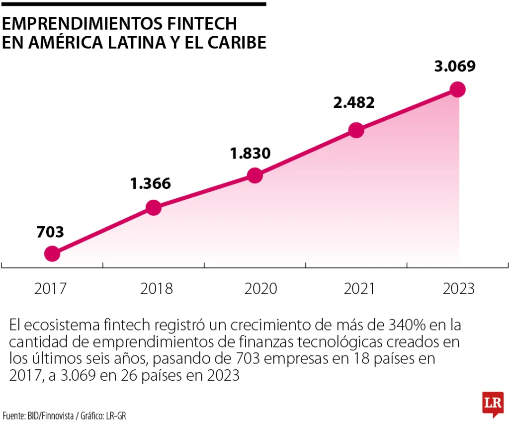 Los números hablan por sí solos. Las plataformas fintech de la región alcanzaron un récord de 3.069 empresas activas en 26 países al cierre de 2023, lo que representa un crecimiento superior al 340% en comparación con las 703 empresas registradas en 2017, según un estudio realizado en conjunto por Finnovista, Banco Interamericano de Desarrollo y BID Invest.