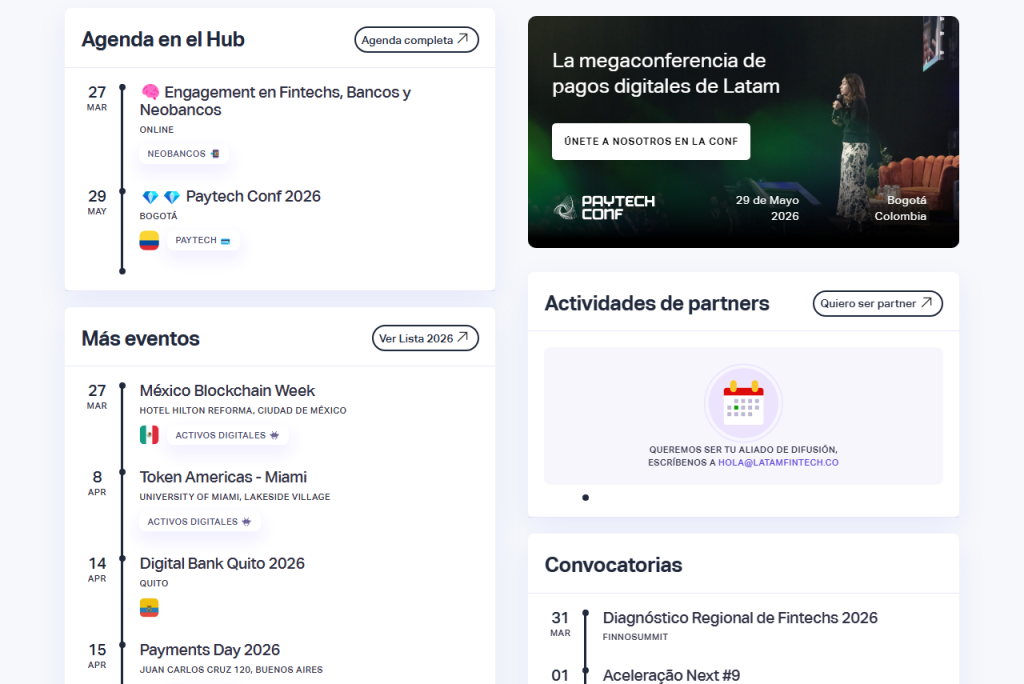 Uno de los muchos espacios es Latam Fintech Hub, la principal comunidad digital del sector, con reportes ejecutivos mensuales, eventos propios y conexión directa entre actores del ecosistema en toda la región.